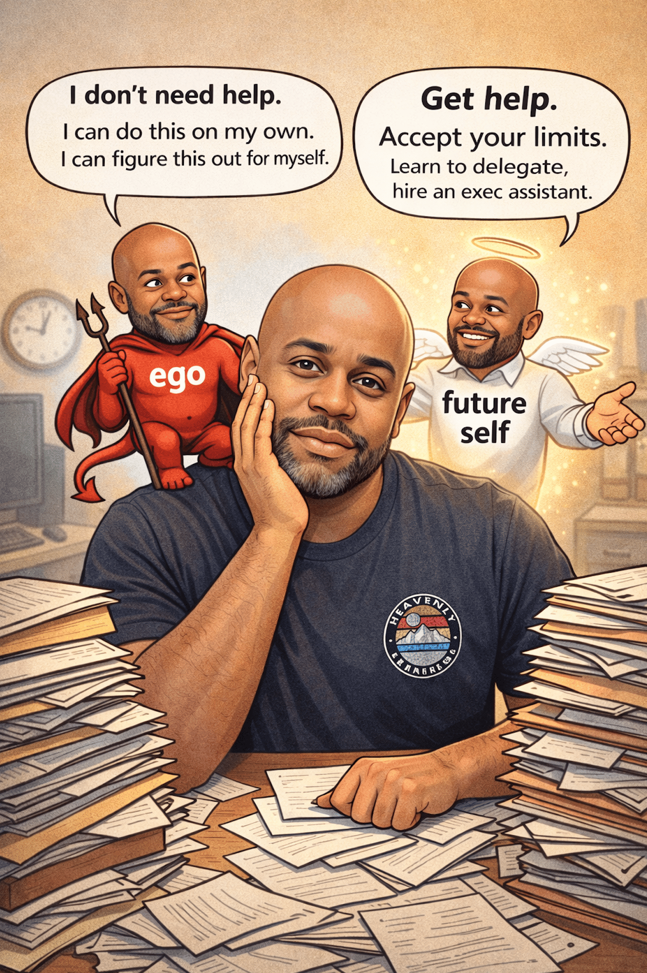 But here's what that voice is really saying: “I don't want to admit that I'm disorganized. I don't want to admit that I'm bad at delegation. I don't want to admit that I need help.”